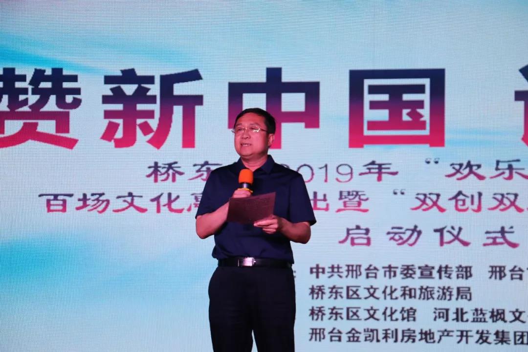 6月14日晚,由中共邢臺市橋東區(qū)政府、邢臺市文化和旅游局聯(lián)合主辦的2019年“歡樂新中國 謳歌新時代”百場文化惠民演出暨“雙創(chuàng)雙服”活動七進演出在金凱利廣場啟動。邢臺橋東區(qū)委副書記申志寶、橋東區(qū)人大副主任施麗萍、橋東區(qū)政府副區(qū)長劉金紅、橋東區(qū)文化和旅游局局長左麗華、橋東區(qū)文化和旅游局副局長蘭永科、河北藍楓文化傳媒有限公司總經(jīng)理馮永敏、南長街辦事處、西門里辦事處、祝村鎮(zhèn)辦事處以及金凱利集團總裁葛慶達、總經(jīng)理俞祖放共同出席了本次啟動儀式。