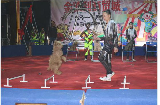 雜技團(tuán)的演員還包括可愛的小動物,訓(xùn)練有素的小狗、小羊和小猴子在訓(xùn)導(dǎo)員的指引下,做出各種規(guī)定動作,小模樣萌翻了現(xiàn)場的觀眾。