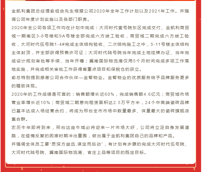 聚智篤行 燃勢騰飛‖金凱利集團2020年度工作總結(jié)
