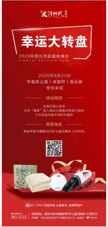 8月23日 大河時(shí)代伍號(hào)院 幸運(yùn)大轉(zhuǎn)盤(pán),精美禮品等你來(lái)拿。
